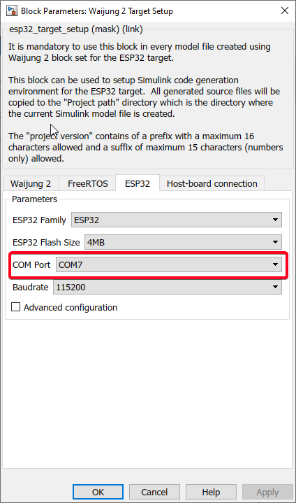 Figure 67: Add Waijung 2 Target Setup block to the model